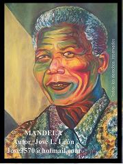 This Oil/Oleo demonstrates celebrity Nelson Mandela. |